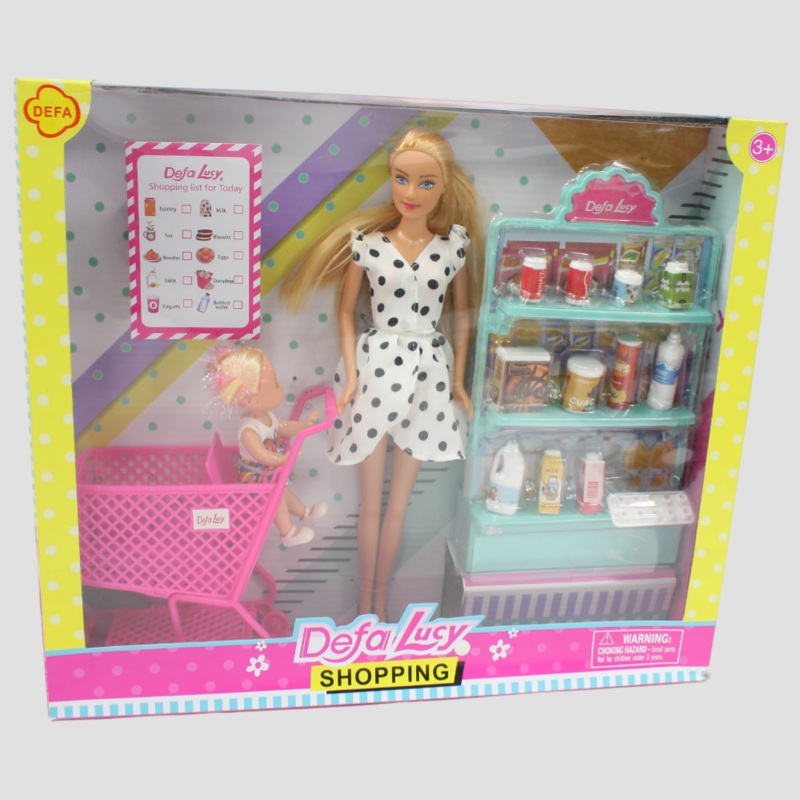 Let your child step into the world of pretend shopping with the Defa Lucy Supermarket Playset! This adorable set features Lucy and her little girl, ready for a fun-filled shopping trip.