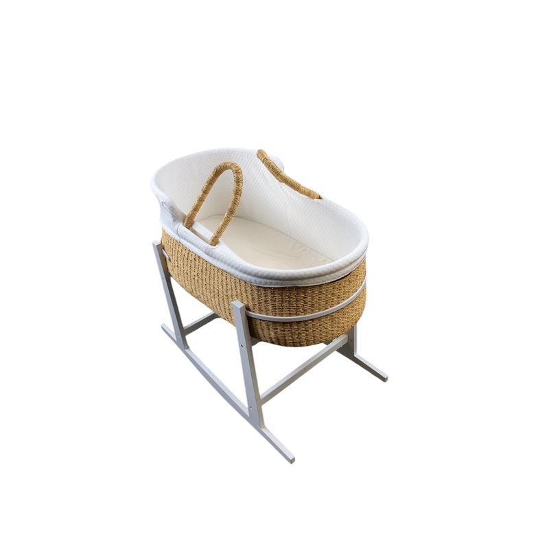 Beautiful hand woven sleeper basket. Provides a safe and centuries-old alternative to bassinets and cradles. Can be used on the rocking stand and is easy to move from room to room so baby can sleep where you are. Ages 06 months
