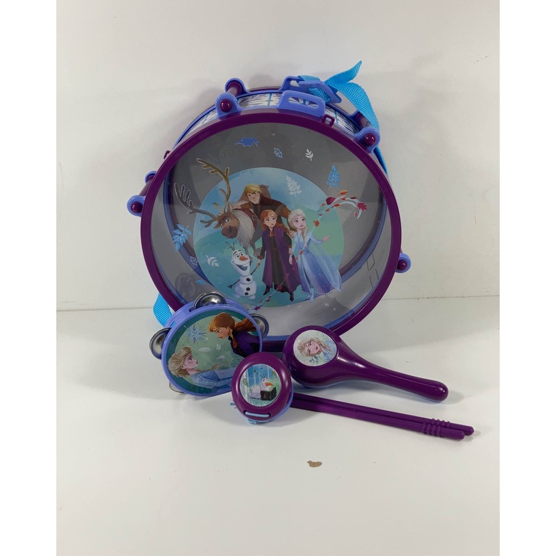 Condition: Gently Used "Get ready for the band to come to life at your house with this Frozen themed musical set. All instruments fit inside the drum when its time for the music to stop."