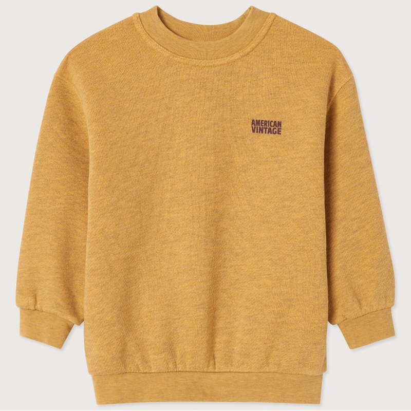 Doven kid's sweatshirt by American Vintage. Overdyed sweatshirt with a slouchy fit, round neck and dropped shoulders.Colour - Overdyed Curry.88% Organic Cotton 12% Polyester.Product Code KDOV03AH24ASTRS