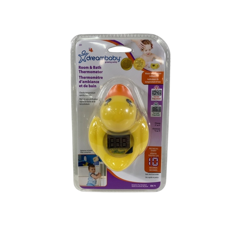 Condition: Open Box Cute thermometer that provides digital reading and also has an indicator light that will turn red when the bath water is too hot and green when the bath water is too cool.