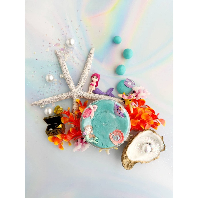 Dive for mer-mazing treasures un-dough the sea! This Mermaid KidDough Play kit is full of deep sea mystique and fun!Includes: 8 oz Light Blue (Blue Hawaiian) KidDough with Mermaid, Sea Turtle, Sting Ray, and Narwhal charms, Mermaid Figurine, Aquatic Plants, Clamshell Charm, Giant Pearls, and Treasure chest Filled with Treasure.Our super silky sensory doughs are buildable like a modeling compound, but are squishy and silky smooth like a butter slime. They are softer, more pliable, and far longer lasting than any compound you have tried before! Every all-natural KidDough is made with non-toxic food grade ingredients and is totally taste safe. These super durable doughs last for hundreds of hours of play (12 months on average) but wash out easily with just warm water. If ever you experience drying, just knead to rehydrate! KidDough is the best way to play Dough!THIS KIT INCLUDES SMALL PARTS THAT MAY BE A CHOKING HAZARD FOR CHILDREN UNDER 3 YEARS OLD.