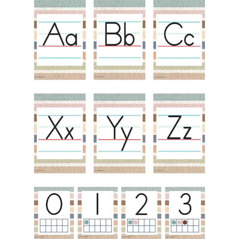 The eye-catching colors and lively designs of this bulletin board will make learning the alphabet fun! Alphabet cards measure 5-1/2″ x 8-1/2″ and number cards 010 measure 4-1/4″ x 5-1/2″. 37 total pieces.