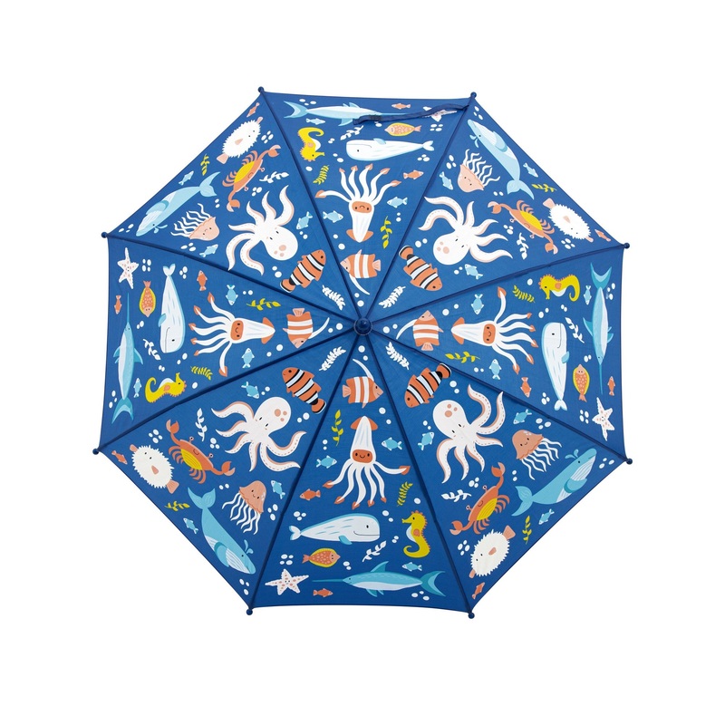Der SEA-Regenschirm von Little L Rain/ Coolkidz ist das perfekte Accessoire fr Kinder ab 3 Jahren, um an regnerischen Tagen trocken zu bleiben und gleichzeitig in eine faszinierende Unterwasserwelt einzutauchen. Das Design dieses Regenschirms ist von der Schnheit des Ozeans inspiriert und zeigt bunte Fische, Algen, Kraken und Wale, die die Fantasie der Kinder anregen. Doch das Besondere an diesem Regenschirm ist seine Farbwechsel-Funktion: Sobald er nass wird, verwandelt er sich in ein magisches Spektakel lebendiger Farben, das die Kinder begeistern wird. Hergestellt aus strapazierfhigem Polyester ist dieser Regenschirm leicht zu bedienen und zu tragen. Mit einer Gre von 38 cm bietet er ausreichend Schutz vor Regen und Wind, whrend er gleichzeitig ein tolles Accessoire fr kleine Abenteurer ist. Der SEA-Regenschirm ist nicht nur funktional, sondern auch ein echter Hingucker. Er entfhrt die Kinder in die Tiefen des Ozeans und lsst sie die Schnheit der Unterwasserwelt entdecken. Ein Must-Have fr alle kleinen Entdecker, die auch bei schlechtem Wetter nicht auf spannende Abenteuer verzichten wollen. Also tauche ein in die Welt der Meere, selbst im Regen, mit dem SEA-Regenschirm von Little L Rain/ Coolkidz. Ein Produkt, das nicht nur Schutz bietet, sondern auch die Fantasie der Kinder anregt und sie in eine magische Unterwasserwelt entfhrt. Ein absolutes Must-Have fr alle kleinen Abenteurer!