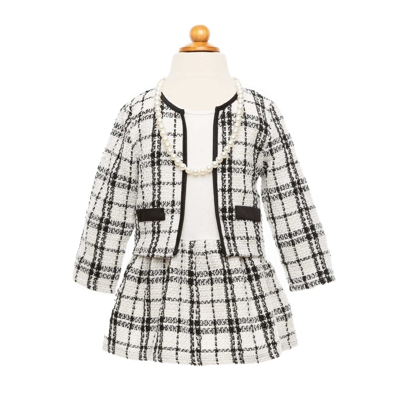 Heute mchte ich eine Fashionista sein!Die Verkleidungen von Great Pretenders sollten in keinem Kinderzimmer fehlen.Ob zum Fasching, fr die Mottoparty oder fr das Rollenspiel, die Kostme sind ein echter Hingucker.Im Rollenspiel strken Kinder ihr Selbstvertrauen und ihre Sozialkompetenzen. Wenn die Kinder in Verkleidungen schlpfen, erschaffen sie ihre eigene fantasievolle Welt und regen ihre Kreativitt an.Dieses Set besteht aus einem Kleid und einer Jacke aus Creme und Tweed, das durch die Perlenkette abgerundet wird.Modell: 64105Altersempfehlung: 5-6 JahrePflege: Kaltwsche Schonwaschgang