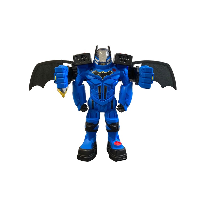 “Save Gotham with Batman and this 30 inch Batbot! Features shooting discs, a voice changer, super punching action, a missile launcher and secret the Batman HQ!”