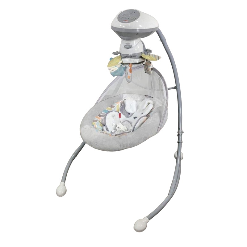 Condition: Gently Used"Sweet dreams darling baby, this gentle swing is sure to lull you to sleep. Between the soft puppy insert, calming music and relaxing sway, this swing wins on all fronts. A mobile with animals overhead entertains while music or nature