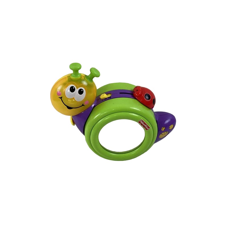“This fun toy will grow with your baby. For tummy time, baby will enjoy looking in the mirror. For sit-up play, theres back and forth rocking motion. And when babys ready to crawl, the snail will lead the way, wobbling along with lively music and dancing lights!”
