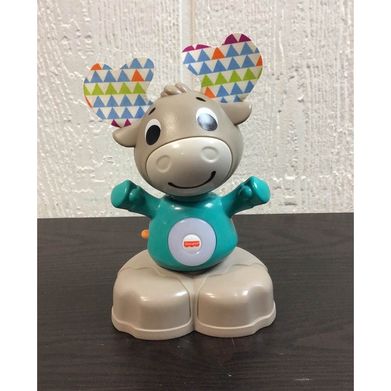 “This adorable interactive moose introduces your baby to counting, colors and more with colorful lights, music, and smooth dance moves! Also links with other Fisher Price Linkimals for added fun!”