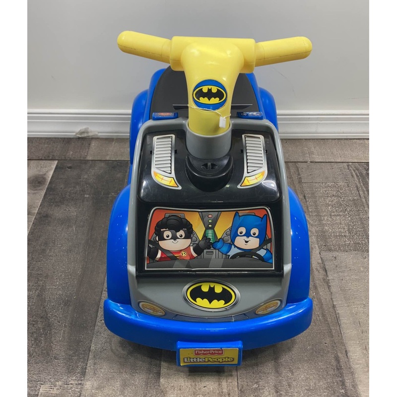 Condition: Gently Used "This durable ride on toy from Fisher-Price doubles as a raceway for Batman and Joker. The realistic sound effects add to the fun."