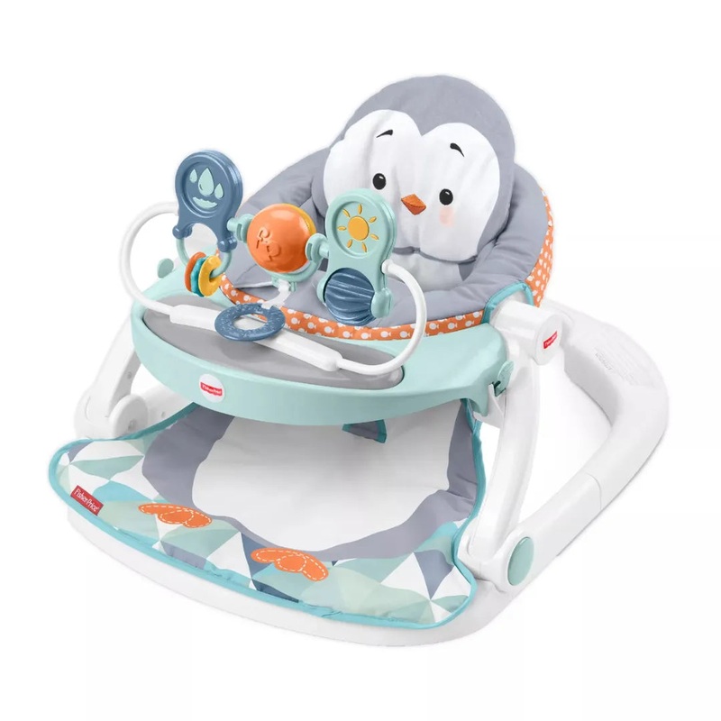 This adorable, penguin-themed Fisher-Price Sit-Me-Up Floor Seat is comfortable for your baby and super-convenient for you. The soft fabrics and wide base of this portable infant chair help support your baby as you sit them up to interact with the world around. The convenient tray is perfect for snacking, and removable toy bar provide exciting hands-on play. And the best part? The chair folds making it easy to store or take with you as you travel! Use only with a child who is able to hold head up unassisted and who is not able to climb out or walk.