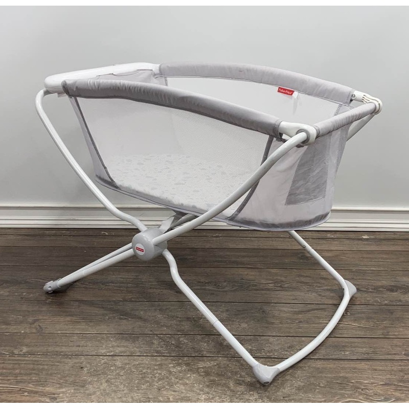 Condition: Gently Used "This convenient lightweight bassinet is there when you need it and easily folds flat when you don't! Rock the curved base to gently lull your little one off to sleep. An excellent portable sleeping solution."