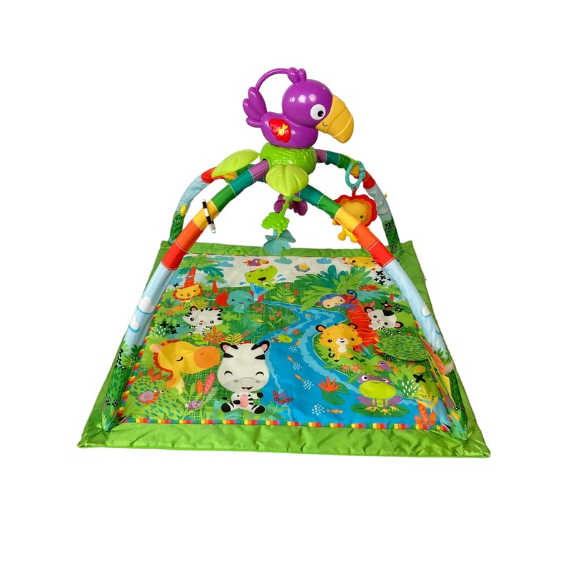 Condition: Gently Used"Baby will love to play in the rainforest on this compact play mat. Includes a tummy-time pillow, mirror, and other fun toys to engage your baby. "