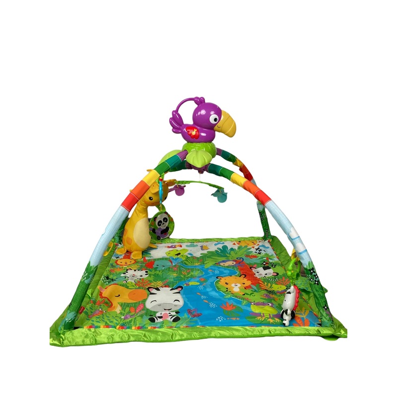 “Pleasant music and lights will capture your baby’s attention while exploring this zoo-themed play mat. “