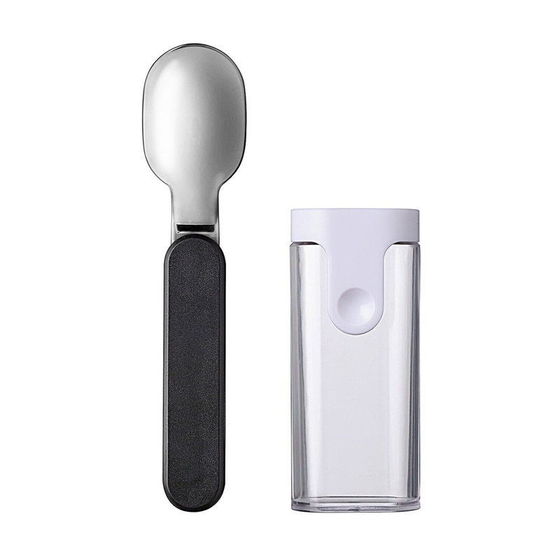A stylish, folding spoon that fits easily into the top compartment of your lunch pot. Just want to use the spoon on its own? It comes with its own handy case.Attention lunch pot lovers! Would you like to be able to take a warming soup to work or enjoy your yoghurt and fruit on the train? Then we’re sure you’ll love this handy solution: the Ellipse folding spoon in Nordic blue can be folded in half and stored away in the top compartment of your lunch pot! Now you can keep your spoon and lunch pot together, and you’ll never have to dig out that sticky spoon from the bottom of your bag again! It comes with a handy case, so you can also store your spoon separately. It folds out with a simple click. Just click and tuck in! Once you’re back home, you can put everything in the dishwasher, so it’s ready to go for your next meal. Bonus feature: the spoon comes in the same colour as your favourite lunch pot.