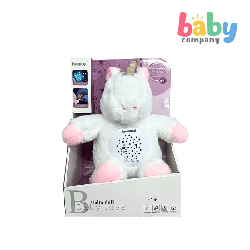 The Funmuch 2in1 Baby Calming Doll Projector Toy is a soft plush rotating light projection toy with soft music that is designed for babies to calm and have a better sleep. It is recommended for babies 0 months and above of age.