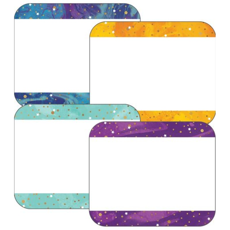 Make sure everything stays in order with Carson-Dellosas stylish name tags. Available in a variety of colors, self-adhesive name tags are perfect for labeling storage boxes, folders, cubbies, and shelves. Create a contemporary classroom by checking out coordinating Galaxy products.