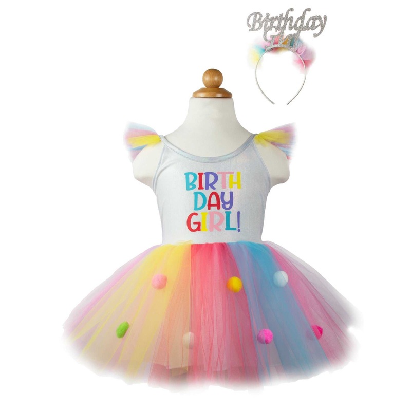 Heute mchte ich ein Geburtstagskind sein!Die Verkleidungen von Great Pretenders sollten in keinem Kinderzimmer fehlen.Ob zum Fasching, fr die Mottoparty oder fr das Rollenspiel, die Kostme sind ein echter Hingucker.Im Rollenspiel strken Kinder ihr Selbstvertrauen und ihre Sozialkompetenzen. Wenn die Kinder in Verkleidungen schlpfen, erschaffen sie ihre eigene fantasievolle Welt und regen ihre Kreativitt an.Dieses Set besteht aus einem Tutu- Kleid und einem Haarreif.Das Tutu- Kleid besteht aus Schichten aus rosa, blauem und gelben Tll und ist mit bunten Pompons besetzt.Das Oberteil und die Trger sind aus Stretch- Spandex und die Tllpuffs an den Schultern vervollstndigen den Look.Modell: 33703Material: PolyesterAltersempfehlung: 3-4 JahrePflege: Kaltwsche Schonwaschgang