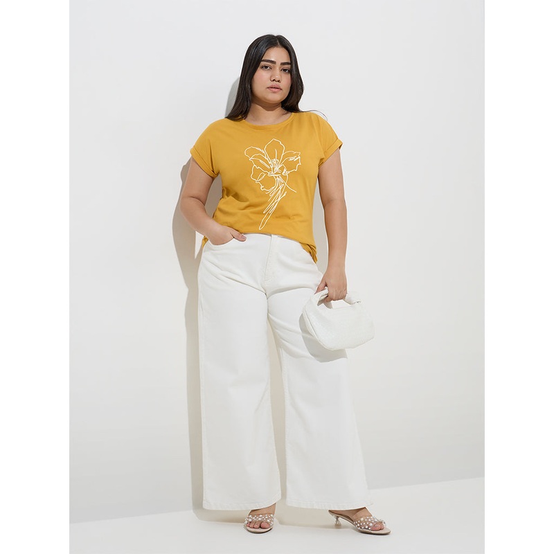 This mustard t-shirt from Gia is milled from pure cotton for all-day comfort. Fashioned with a floral motif at the front, it is designed with a round neck and upturned dolman sleeves for a relaxed look.