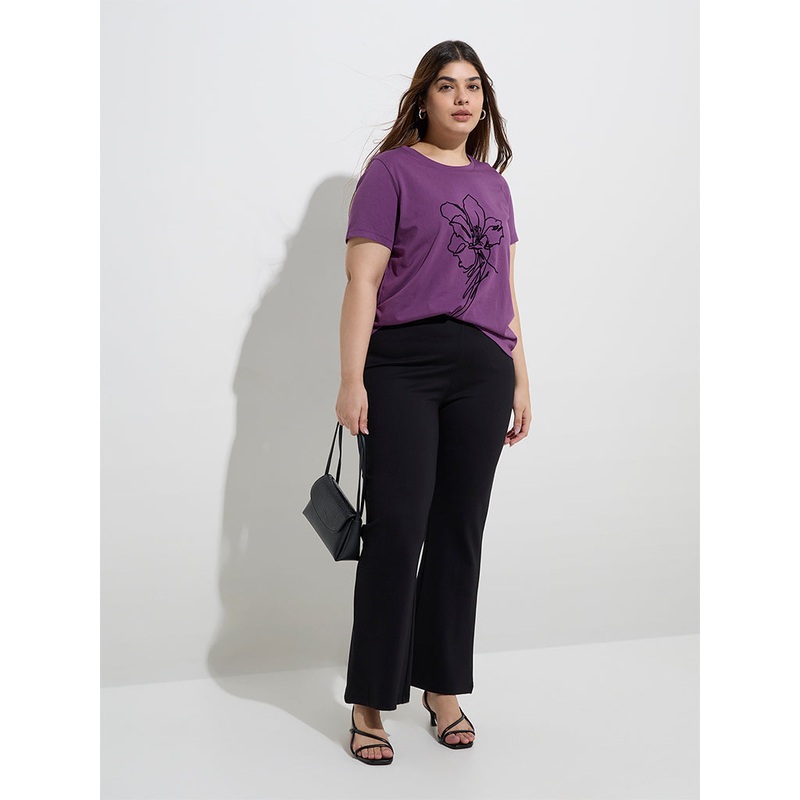 This purple t-shirt from Gia showcases a floral motif at the front. Milled from pure cotton for uninterrupted comfort, it is complete with a round neck and short sleeves.