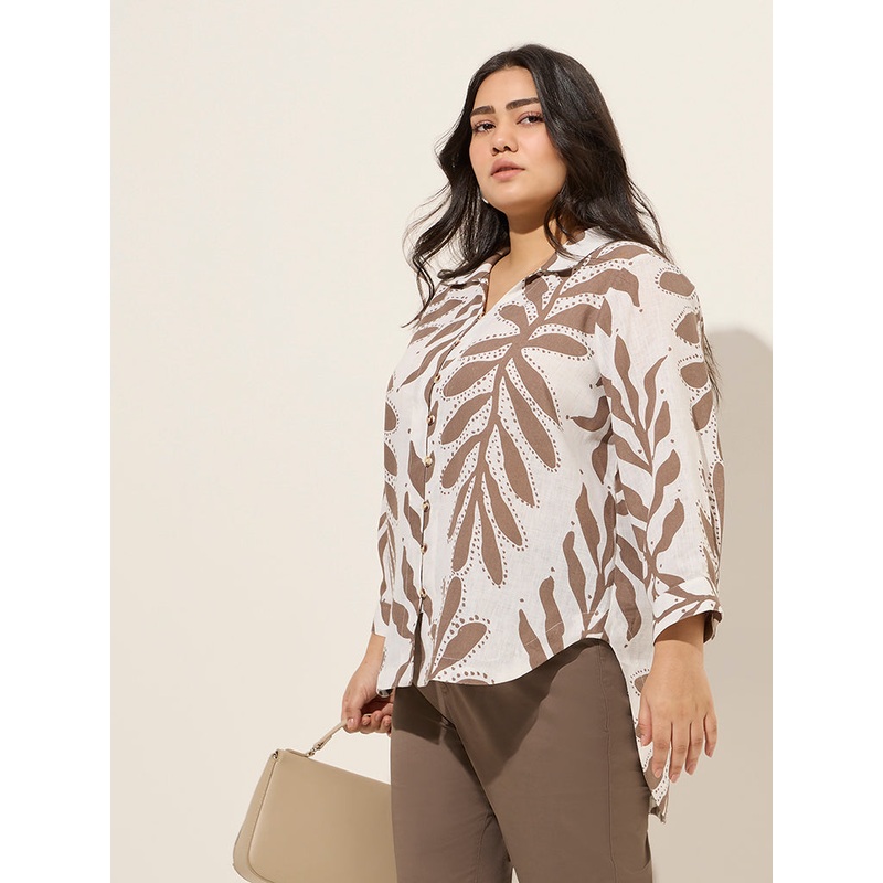 Gia Taupe Leaf Printed High-Low Blouse