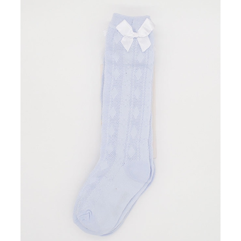 Girl’s Light Blue Knee-high Bamboo Socks with Bow – 3-Pack | 13DF13-2