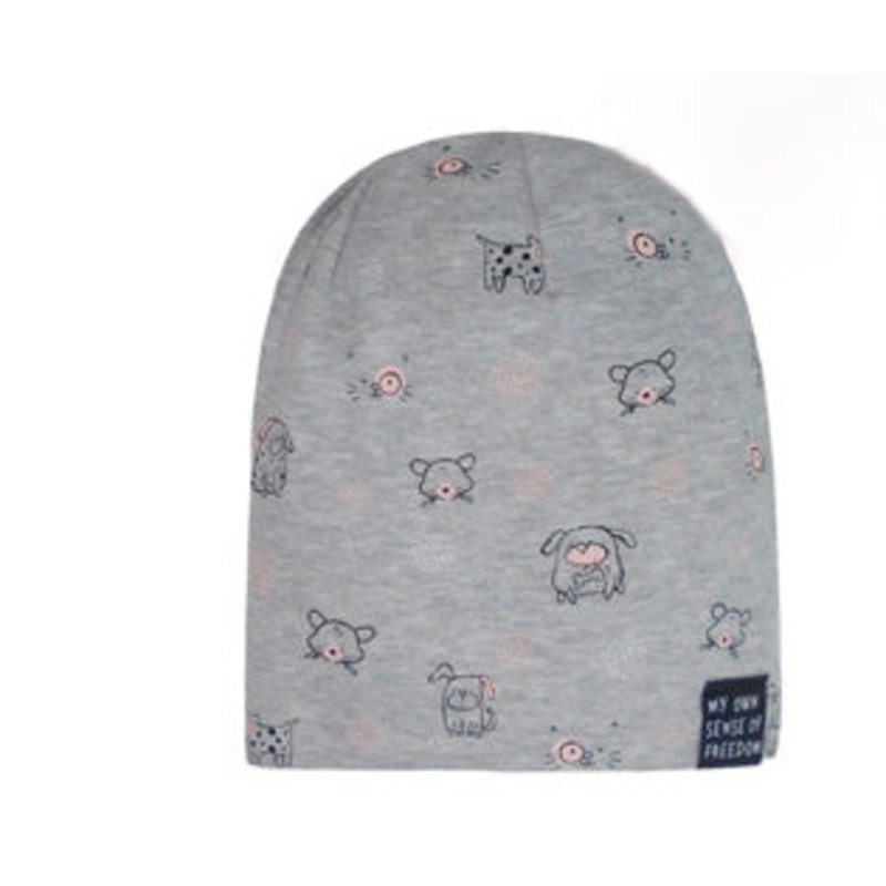 Girls’ Gray Beanie with Cats and Dogs Pattern -4-5 Years | 46/049-50-G