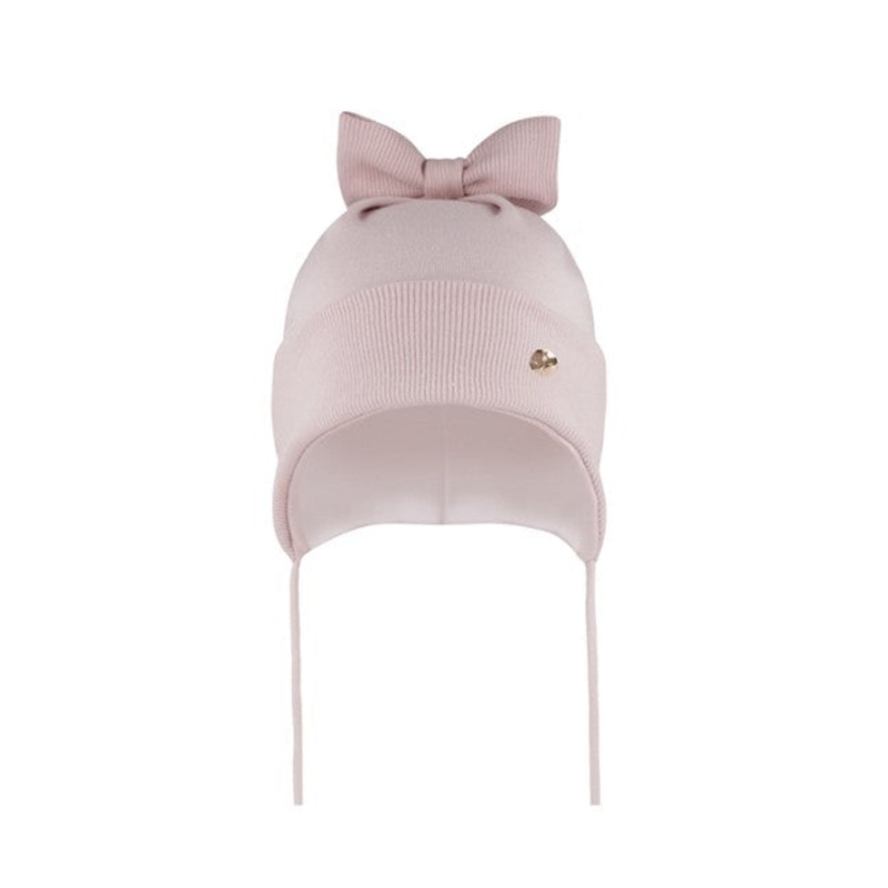 With this wonderful powder pink hat with bow, your child will always be prepared for cold and windy days. The product is made of high-quality materials, which makes it both comfortable and stylish.