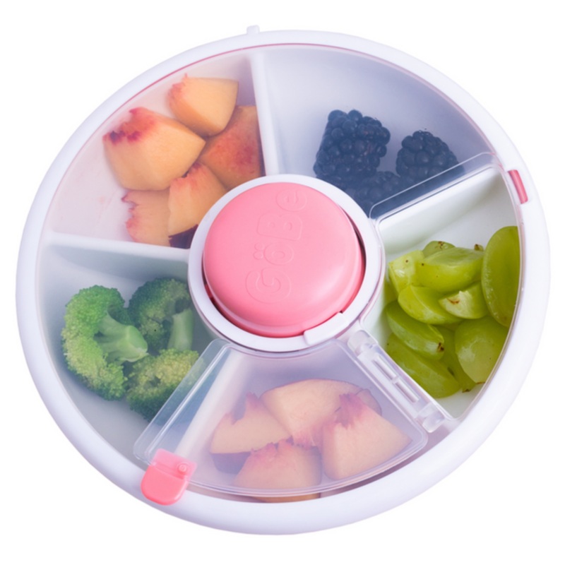 The GoBe Snack Spinner is the only spill proof snack container that allows your child to choose between five different snacks at once! With the push of a button, your child can jump from snack-to-snack, all while reducing spills and mess! More snacking variety for them, less mess for you.