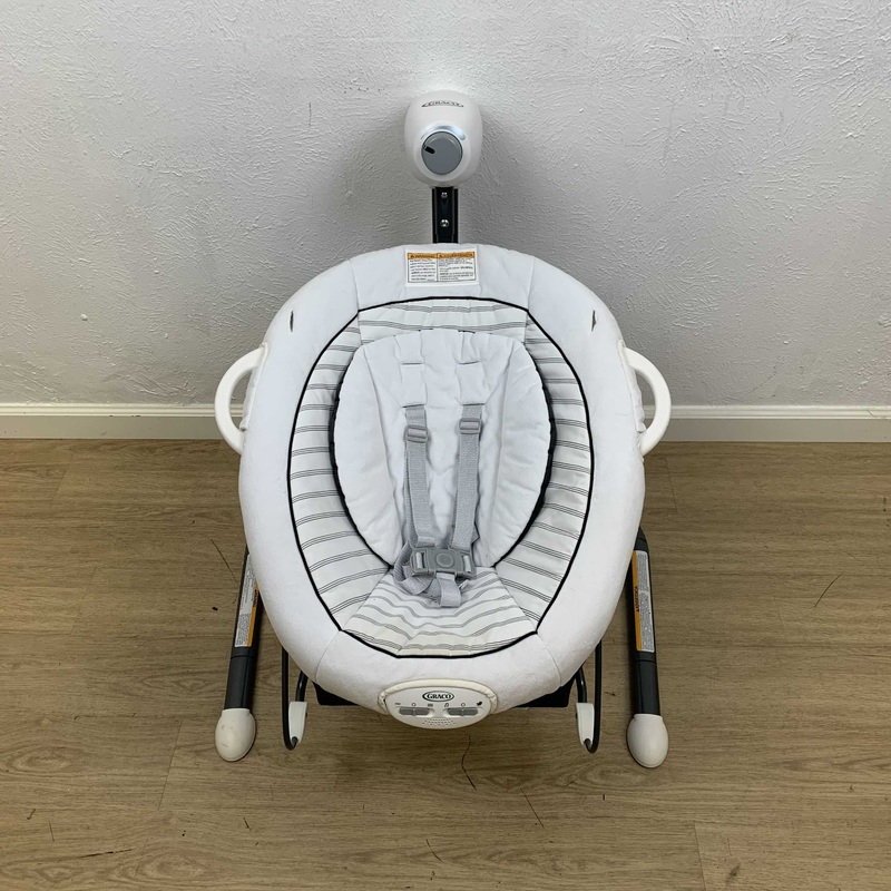 Condition: Gently Used"This baby swing seat quickly turns into a portable baby bouncer and has carry handles to keep baby calm by your side throughout the day. With 3 different angels for reclining, and two soothing motions (side-to-side, or front-to-back)