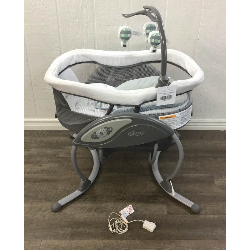 “The DuoGlider soothes with the same gentle motion of your nursery rocking chair glider. Seat reclines into a rocker with an easy lever pull, and you can plug it in or use batteries for two convenient options.”