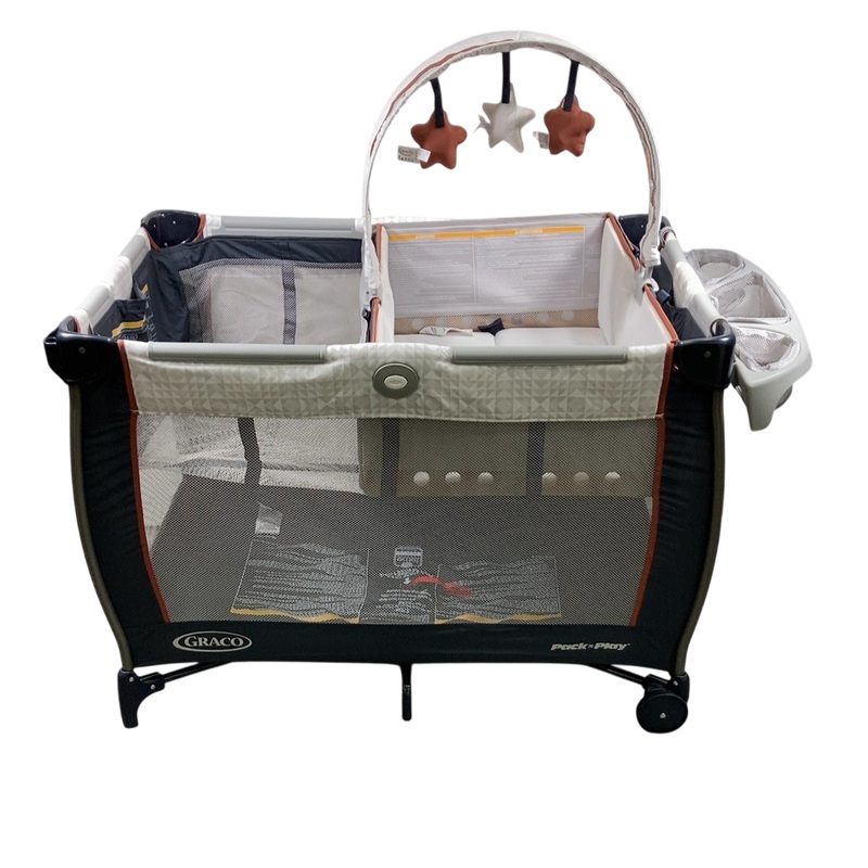 Condition: Gently Used Designed to grow with your little one, this will become an essential take along for any trip! Featuring a lift-out infant bassinet that converts into a tummy time mat, storage organizer and so much more.