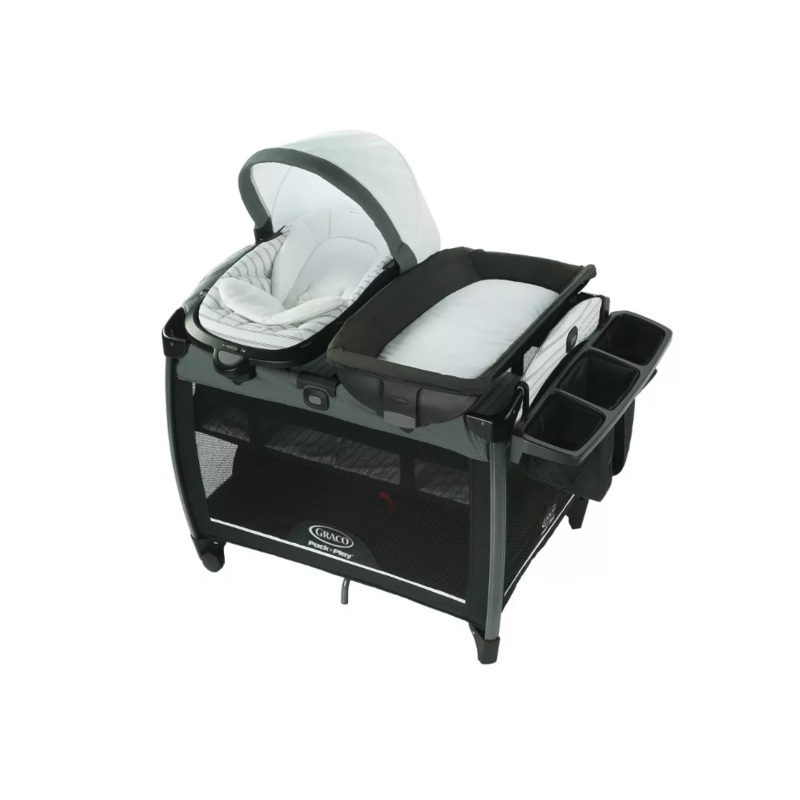 “This Pack n Play provides versatility for your baby. It has 8 different ways that it grows with your baby making it a lasting accessory. It features a newborn seat, a diaper changer, and infant bassinet, an infant seat, and infant rocker a toddler playard, a toddler rocker and a big kid seat! “