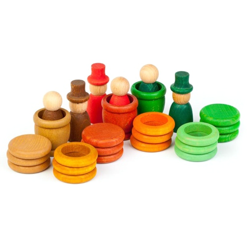 The Grapat Seasons Autumn set includes 3 Nins, 3 Nins with Top Hats (Magos), 3 Mates (cups), 9 rings and 9 coins.
