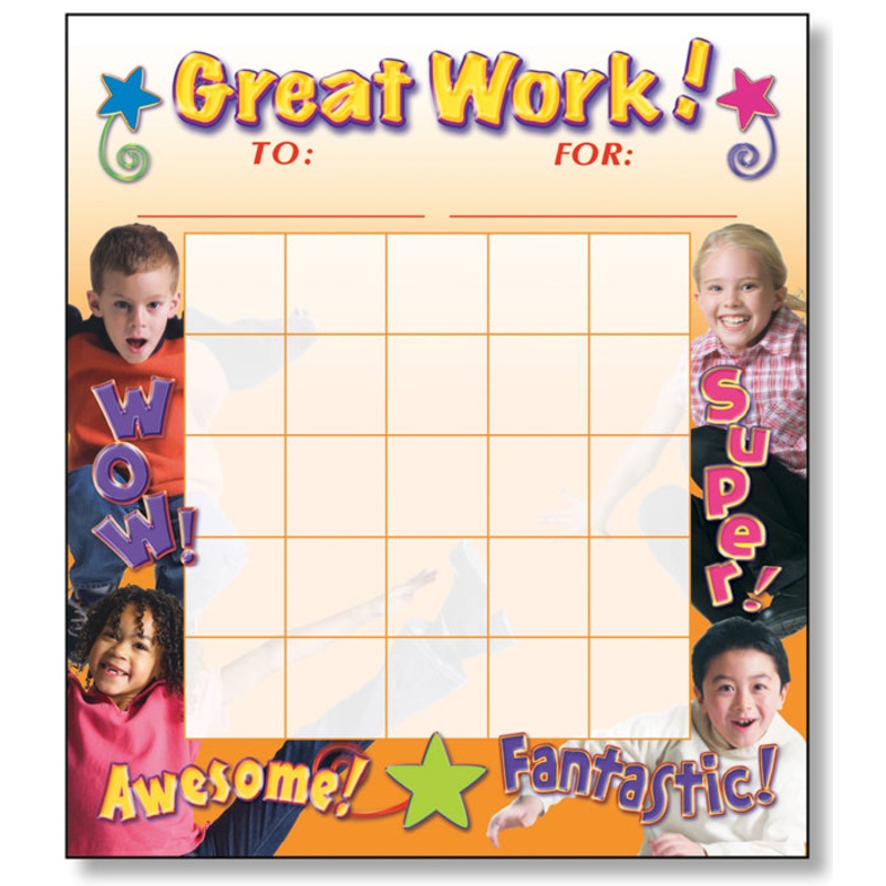 Students will find goal-tracking on these colorful charts very rewarding! Ideal for homework assignments, recording progress, rewarding accomplishments, or motivating good behavior. Each chart has ample space for students name, charts purpose, and 25 of your favorite stickers, stamps or hand-written notes. Awards may be given when charts are filled. 51/4 x 6 (13.3 x 15.2 cm). 36 per package.