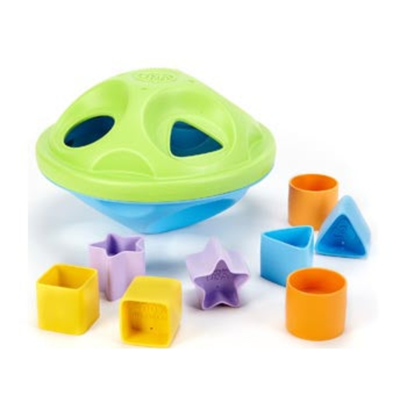 This Shape Sorter helps develop recognition of shapes and colors while also encouraging eye-hand coordination, problem solving, and fine and gross motor skill development. The two-part elliptical Shape Sorter and 8 colorful shapes (2 stars, 2 circles, 2 squares, 2 triangles) are the perfect size and weight for little hands.