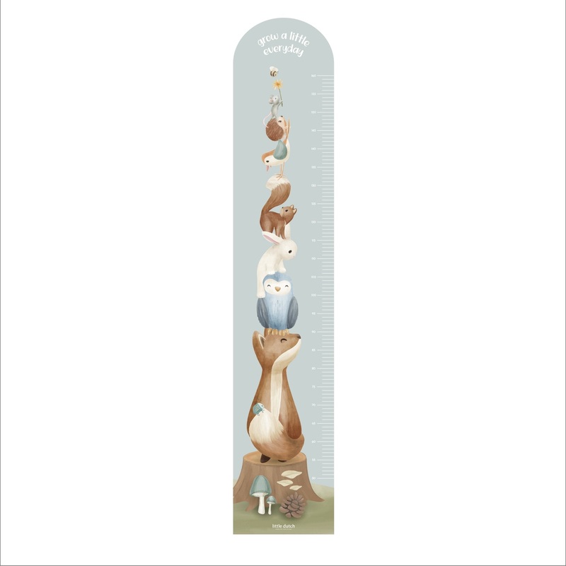 Keep track of how fast the little one is growing with the Forest Friends themed growth chart wall sticker! The growth chart features forest friends such as the fox, hedgehogs, snails, the wise owl and leaves and mushrooms. The wall sticker is easy to stick and remove, thanks to the high-quality, self-adhesive material. This is one sticker, with a matt finish and transparent adhesive border that gives a luxurious look. You can place it on walls, and other smooth, hard surfaces. Ensure a clean and flat surface for best results. Enjoy country charm every day with this cheerful and playful Little Dutch growth chart.