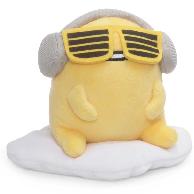DJ Gudetama is ready to put on some hot jams and drop some sick beats. When they get around to it.This soft and easy to squish (go on, Gudetama doesnt care) 5 sitting lazy egg plush features Gudetama wearing fashionable shutter shades with a pair of grey h