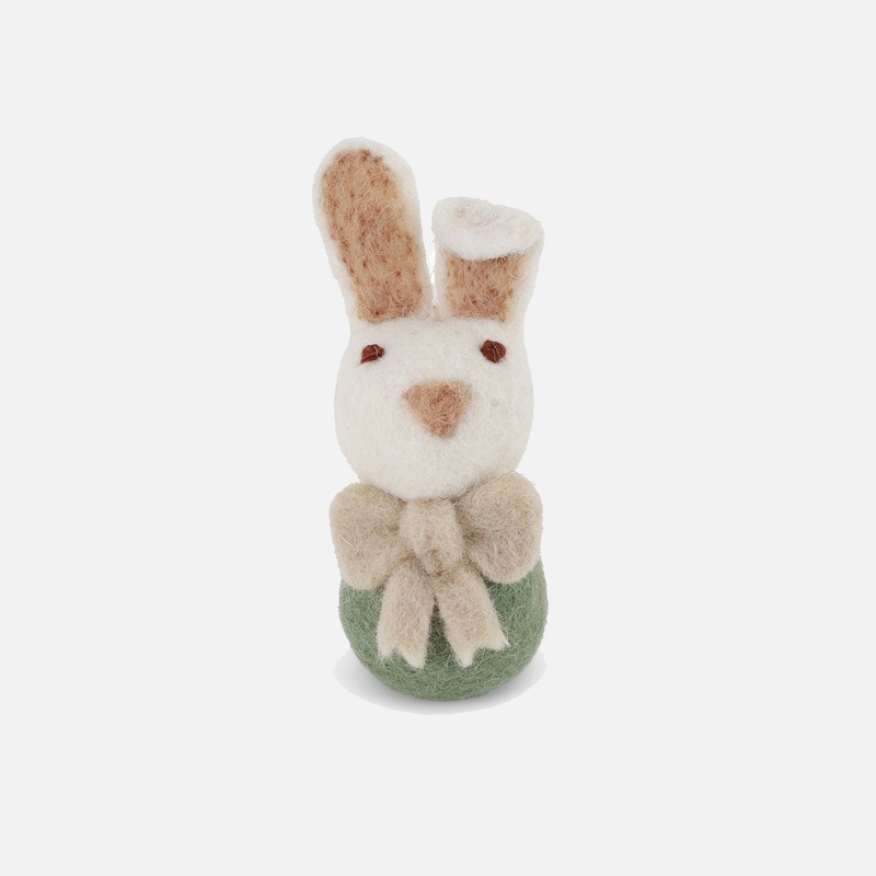 Handmade Felted Wool Bunny with Bow Decoration – Green