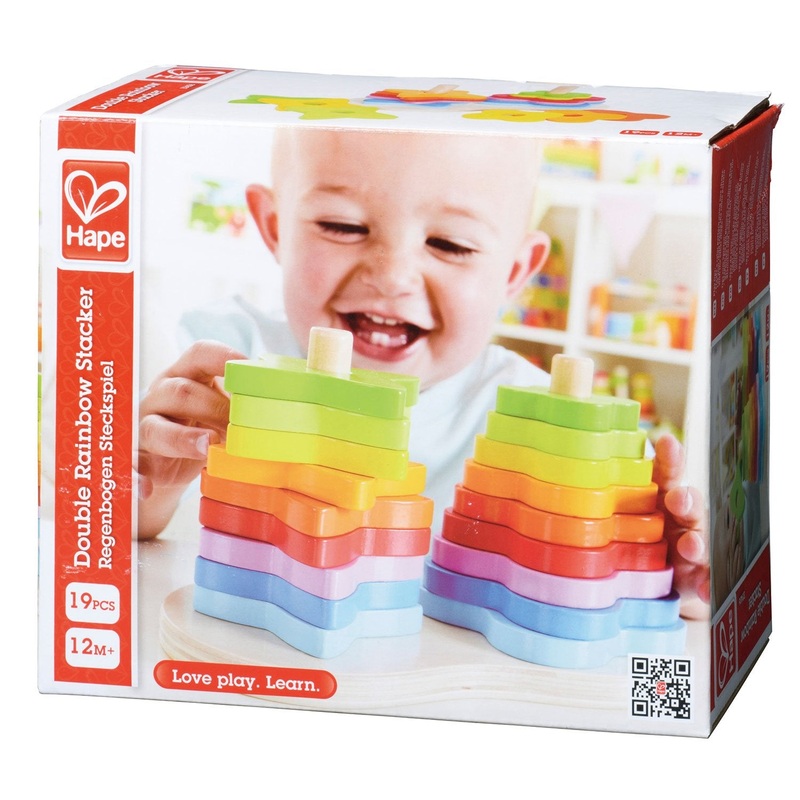 “This award winning wooden two in one stacker encourages the learning of color recognition, coordination, and motor skill development.”