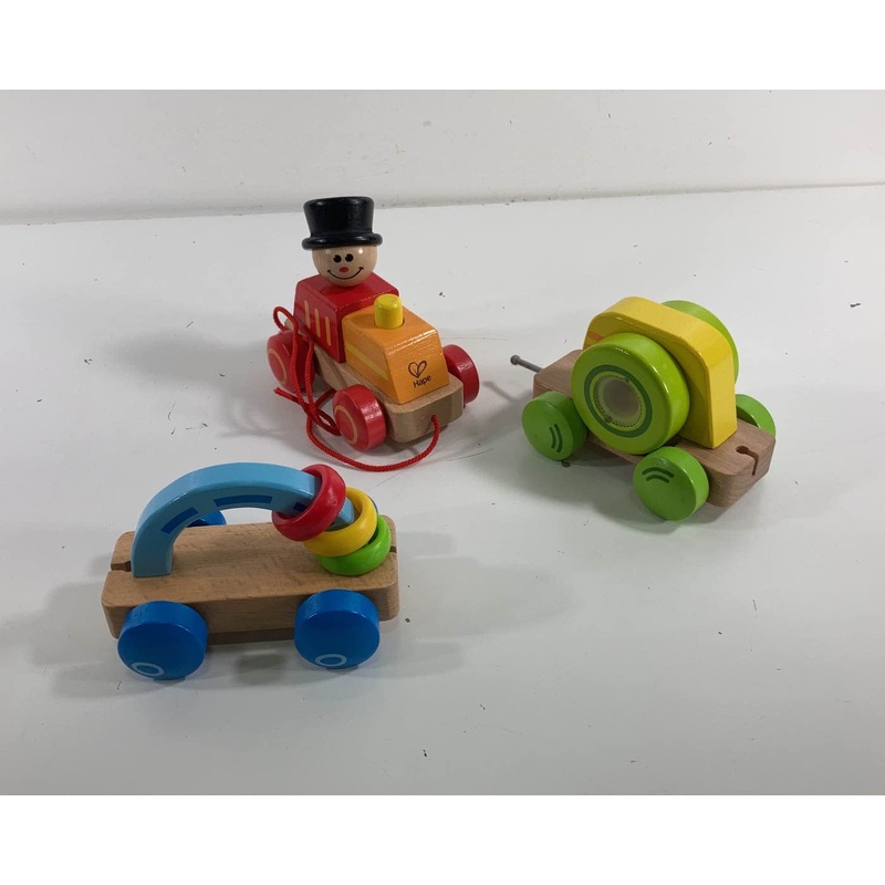 “A cute and colorful wooden train set that your little one can pull along with the string on the front. “