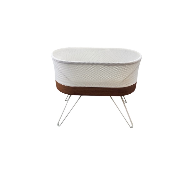 The SNOO is a baby bassinet that helps your baby sleep better! It combines safe swaddling with motion and soothing white noise to help calm your baby back to sleep.