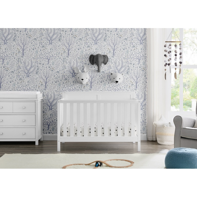 Featuring a decorative back panel with substantial crown moulding and airy slats, the Hartley 6-in-1 Convertible Crib by Delta Children is a contemporary yet timeless choice for your babys nursery. Built to last from infancy to adulthood, the adjustable height mattress allows the Hartley Crib to grow alongside your little onestart with the mattress at the highest level, then lower it as your baby begins to sit or stand. Once your child outgrows the crib, convert it to a toddler bed, daybed, sofa, full size bed with headboard only and full size bed with headboard and footboard (Daybed/Sofa Rail included; Toddler Guardrail #0094 and Full Bed Rails #0050 sold separately). The Hartley 6-in-1 Convertible Crib by Delta Children is available in Grey, Bianca White and Dark Chocolate. Complete your nursery by paring this convertible baby crib with other Delta Children pieces in coordinating finishes.