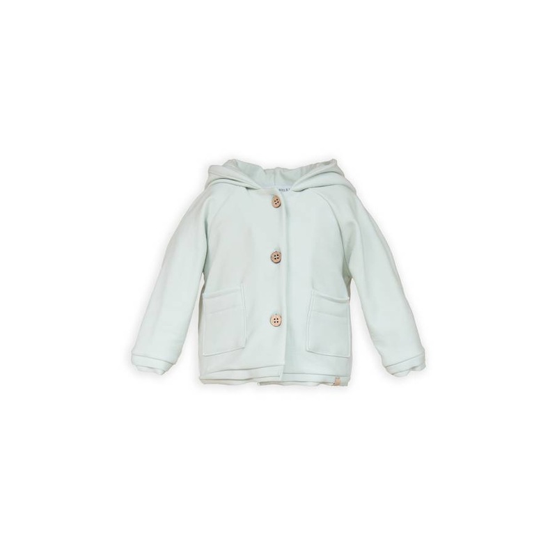 The fabric made from bamboo and natural cotton provides a combination of warmth and breathability, keeping the skin dry and protected. The hooded design with wooden buttons combines functionality and aesthetics, while patch pockets offer an additional practical detail.
