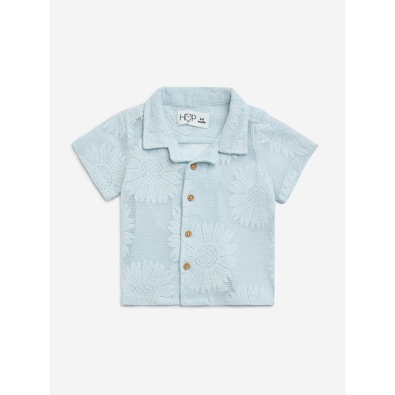 Be the first to review “HOP Baby Blue Floral Knitted Cotton-Blend Shirt”