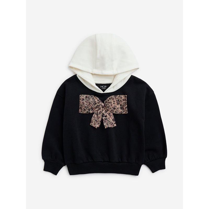 This black sweatshirt from HOP Kids flaunts bow detailing at the front. Milled from a cotton-rich fabric, it boats a hood and full sleeves for sumptuous comfort.
