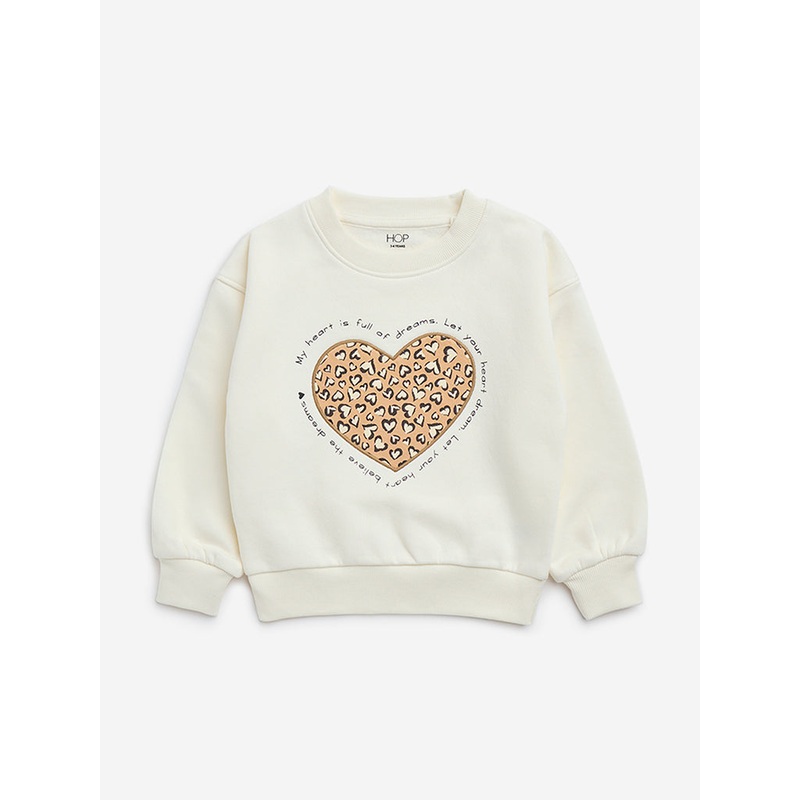 Be the first to review “HOP Kids Off-White Heart Design Cotton-Blend Sweatshirt”