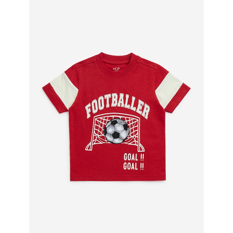 Breathable and soft, this red t-shirt from HOP Kids is a must-have. Flaunting a football themed print at the front, this crew-neck tee comes finished with stripes on the short sleeves.