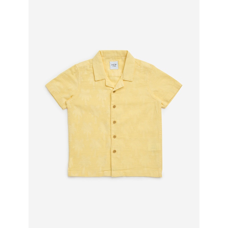 Bring effortless charm to your little ones look with this yellow resort-fit shirt from HOP Kids. Designed with a subtle textured finish for added style, it features a classic camp collar, button-down front, and short sleeves. Crafted from pure cotton, this breezy piece ensures all-day comfort with a trendy appeal.