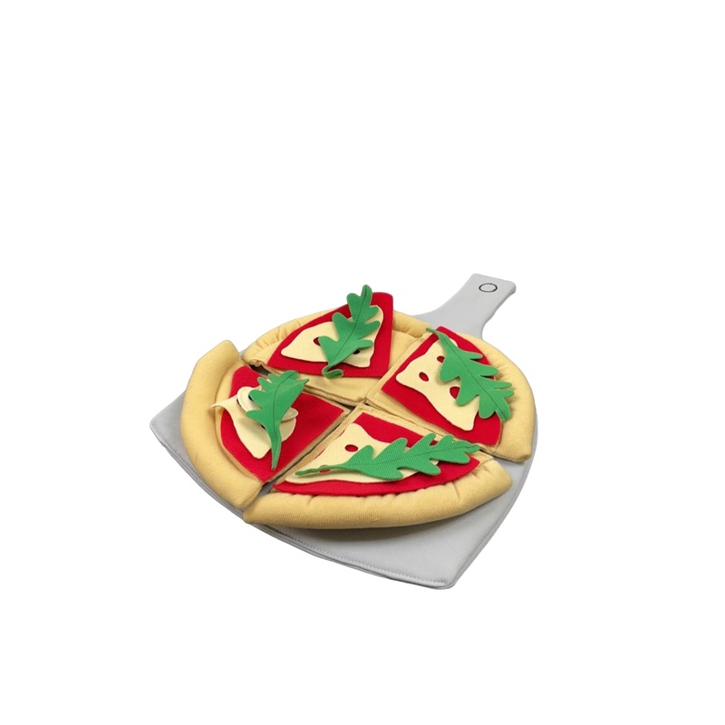 “Add your favorite toppings, and then slice up and serve your pizza slices with this pretend toy. “